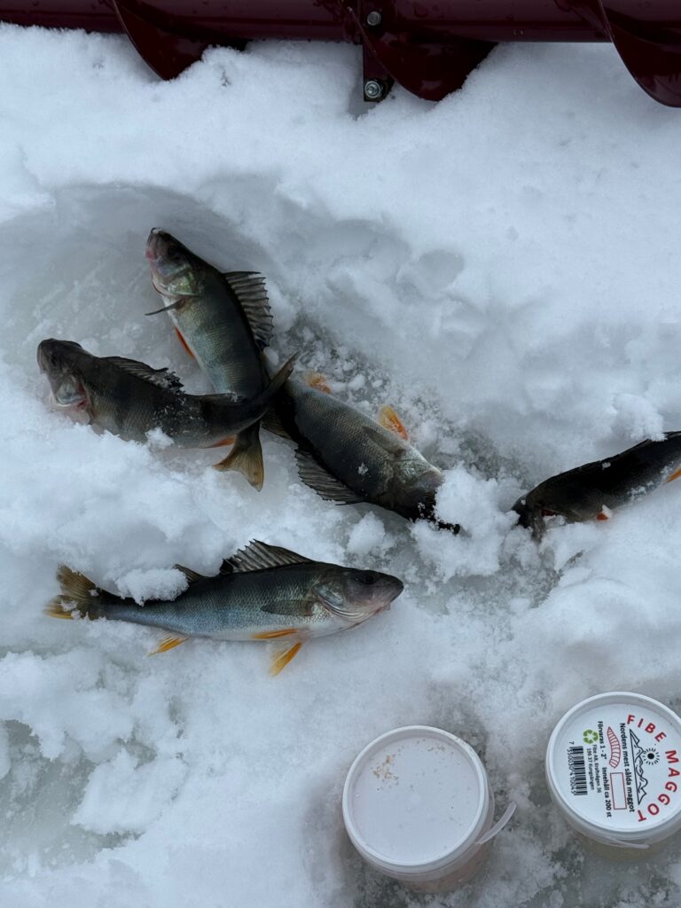 I løpet av konkurransen boret jeg rundt 30 hull, men fikk abbor i bare to av dem. Morten var noe mer jevnt fordelt og dukket opp i flere hull. Konkurransen varte fra klokken 09.00 til 14.00, og selv om nappene var få, var det likevel en flott dag ute på isen.