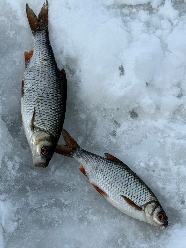 Fisket viste seg også å bli mer krevende enn mange hadde håpet på. Abboren var lite bitevillig og holdt seg stort sett i det vanskelige hjørnet. For 15–20 år siden var det slett ikke uvanlig å få fem til ti abbor rundt halvkiloen på en slik dag. Nå virker det som abboren både er mindre og mer sparsom, kanskje presset av en stadig voksende bestand av mort.
