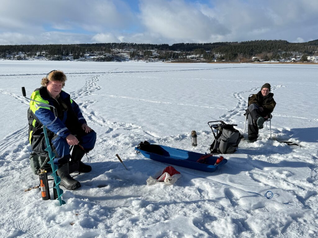 Likevel var stemningen god – en dag på isen i fint vær er aldri bortkastet, selv om fisken ikke alltid samarbeider.